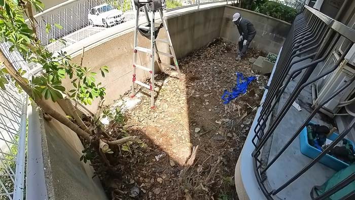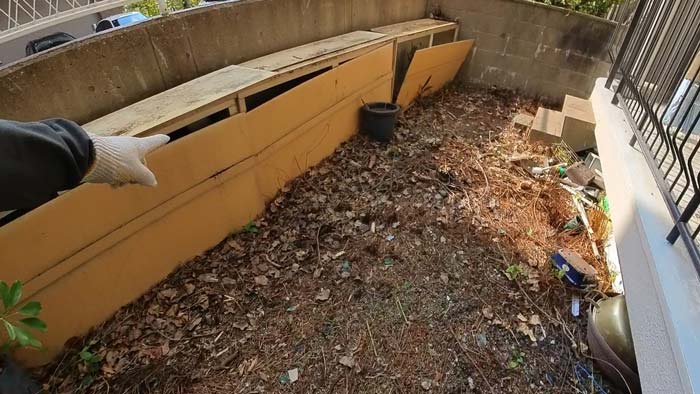 あとは定番のベランダコンクリデッキの下ですね、人はここに詰めて見てみぬふりをしがちですよ!