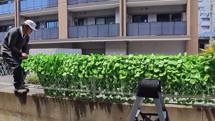 お客様が御用意されてたグリーンカーテンの取付のお仕事を追加です。