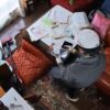 プラ・金属・木材・ガラスなど素材分けしながら300ℓ袋詰めしていきます。