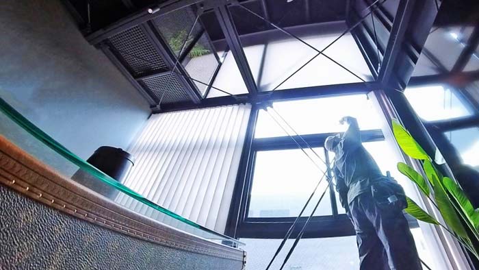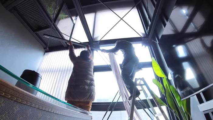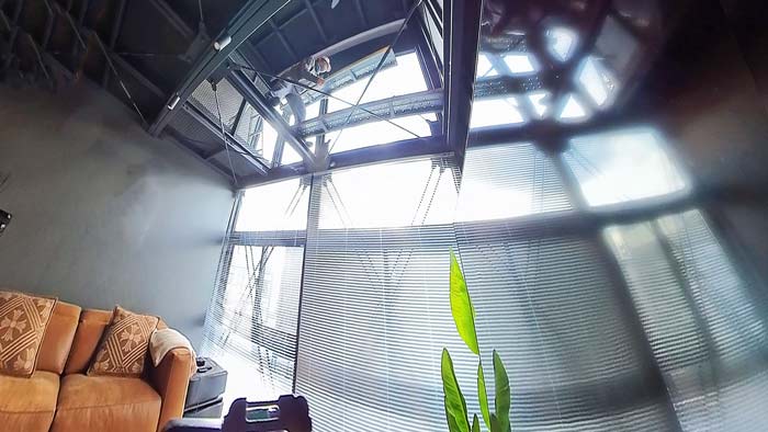 全部で四カ所、3F吹き抜け部分は足場を掛けての作業となります。
