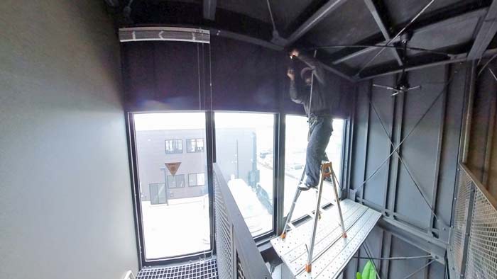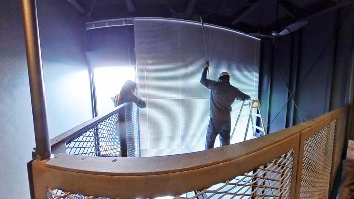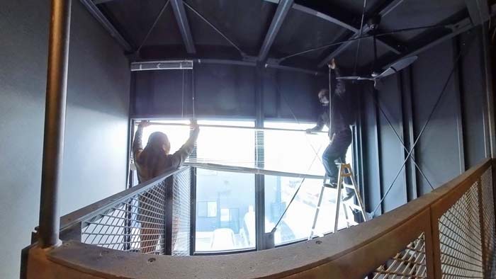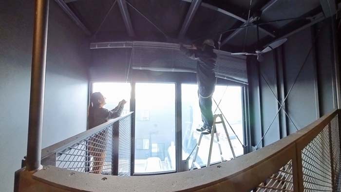 鉄鋼枠へのブラインド設置作業完了