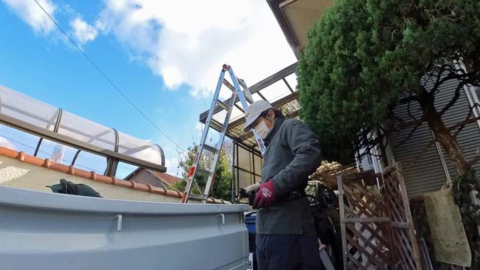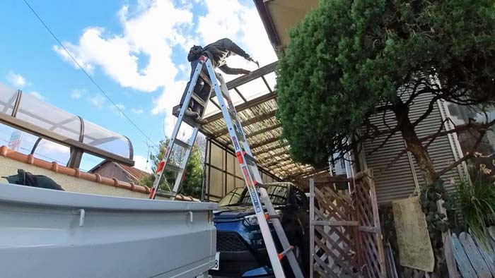 カーポートの板がバタンバタンと永遠に繰り返しているので直して欲しいというご依頼です。