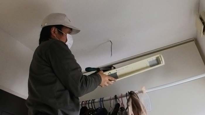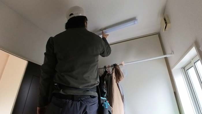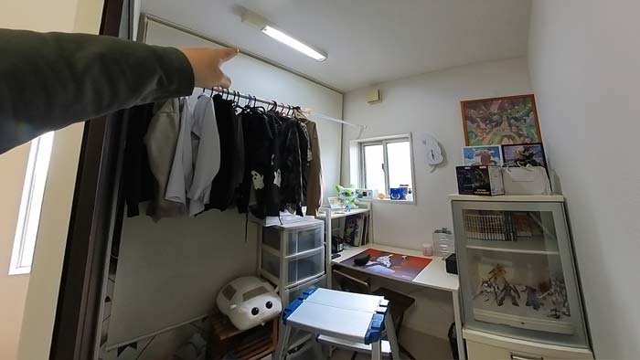 ここがクローゼット部屋で2畳強といった広さですが、確かに部屋として使うには細蛍光灯一本で暗いですね。