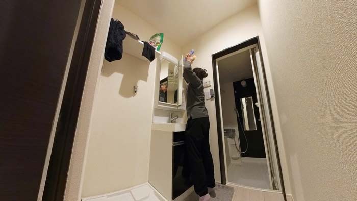 浴室、お風呂、トイレ、下駄箱から全ての荷物出します。