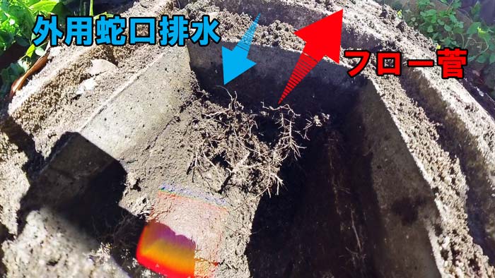 二本ありますが、水が流れてくる方とフロー側ですが、フロー菅の下までは最低欄掘る必要があります。