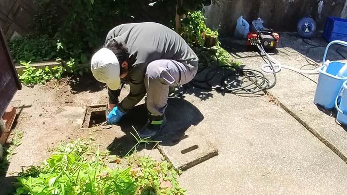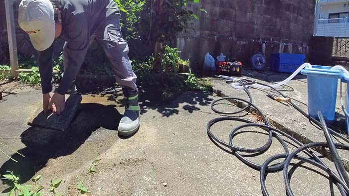 本日は排水桝の詰まりの掃除作業へ行ってきました。