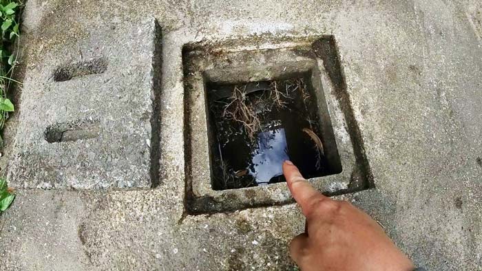 お庭の外の昔の家のコンクリート排水桝がオーバーフローするという事です。
