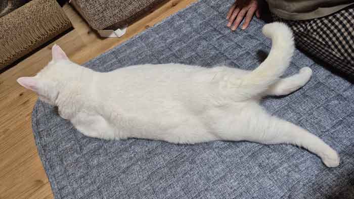 もう白猫ちゃんの寝方に胸キュンでしょ❤