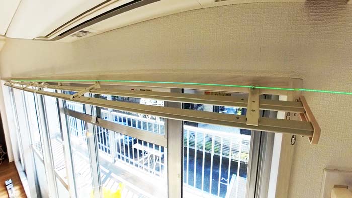 完全水平、完全均等ブラケット位置にてレールの取り付け作業完了です。