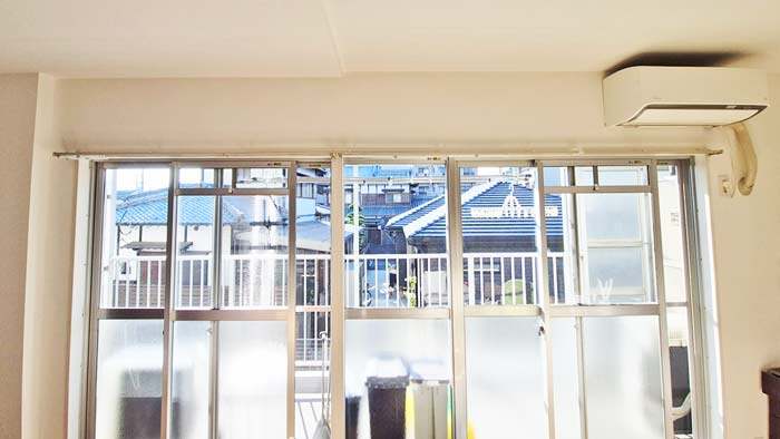 ※築年数が古すぎて窓枠が歪んでる場合は、地面水平と窓枠水平どちらに合わせるか要相談となります。