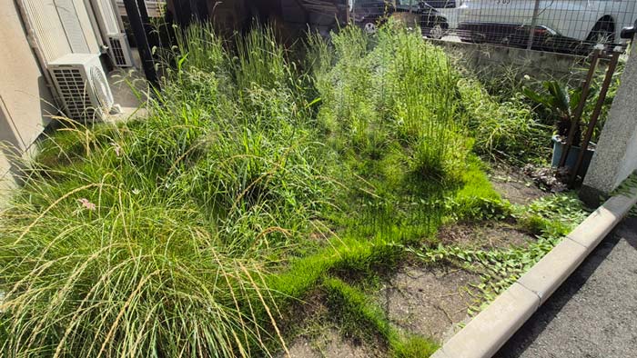 本日はボーボーに伸びきって伸びきって伸びきって伸びきりすぎたお庭の草刈りご依頼です!