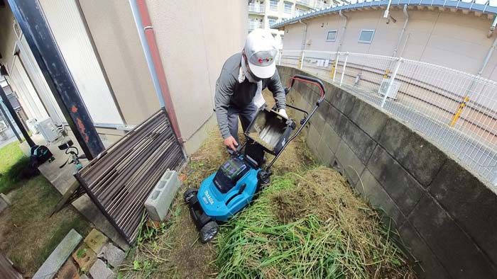 水は大敵で工具がやられるのも有りますが、草の切れが悪くなりますので大変です。
