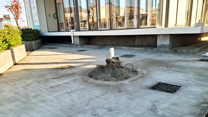 画角的に隠れてましたが、実はすぐ傍に水道管があり超慎重作業だったのです。(電線は解除済)