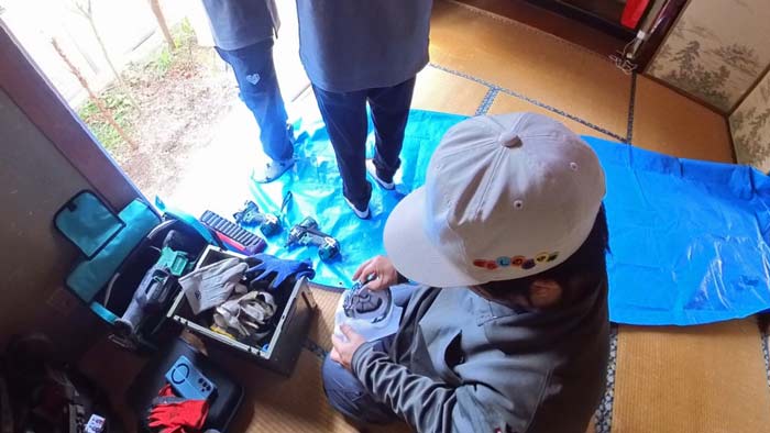 重ねの一番上から外す、今回は向こう側が一番上重ね天井。