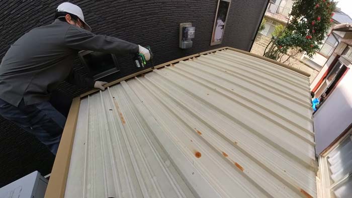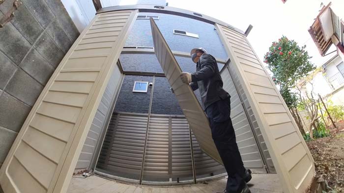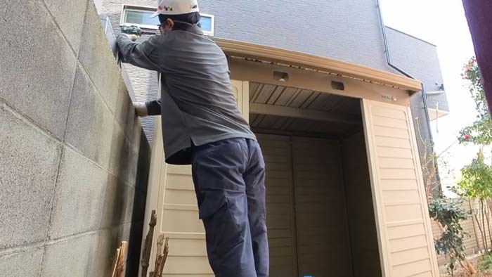 30年物の物置の為、現行タイプと異なり天井外側からのボルト外しがいるパターンです。