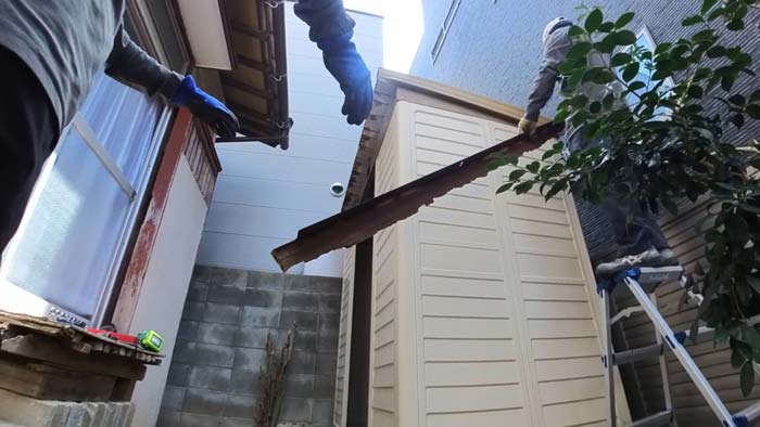 お隣様の塀隣接ベタ付けですのでご挨拶後、非常に慎重に作業が必要でしたが無事完了です。