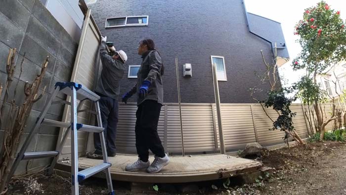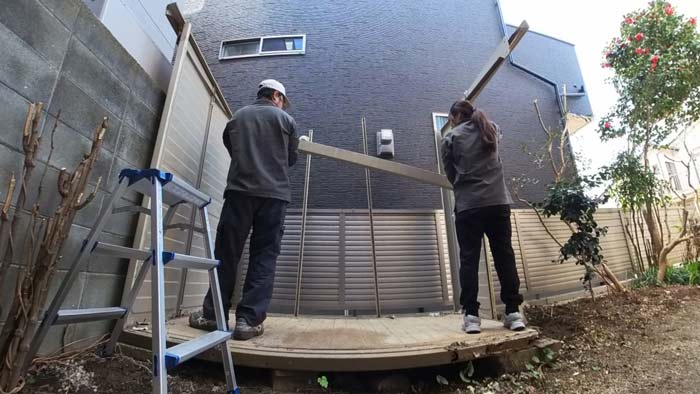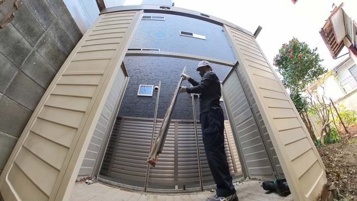 因みに向こう側支柱は塀と近すぎてまだ外せません。
