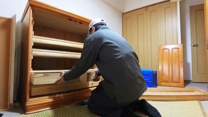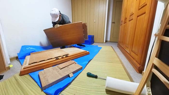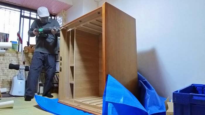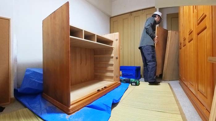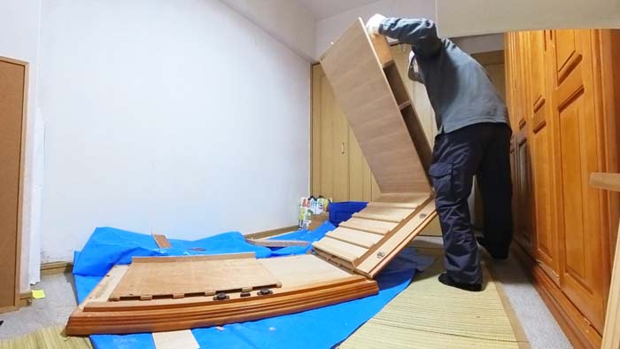 クローゼット側は全荷出ししないとビクともしないので箪笥側の解体です。