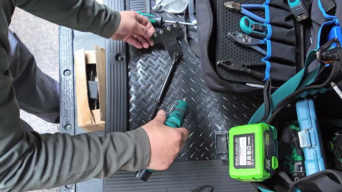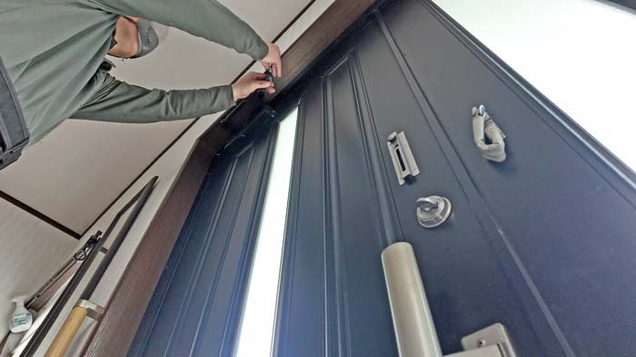 再度ドアを開けて、天井側からアームを本締めして完了です。