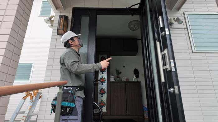 クローザーが効いてないので、玄関ドアなのに開けると風で外壁に当たるまで開きバタ~ン!