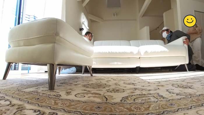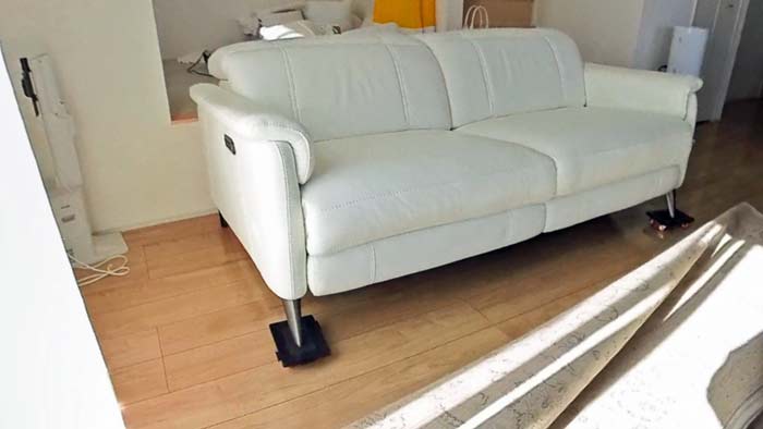 本日は電動リクライニングソファーがありまして、これを10cmほど床を傷つけずに動かしたいというご依頼です。