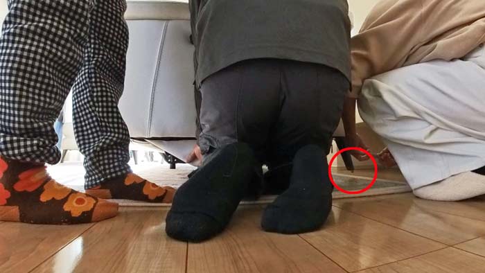 一度下ろして次は前側を上げて、潜り込んで絨毯を引き出します。