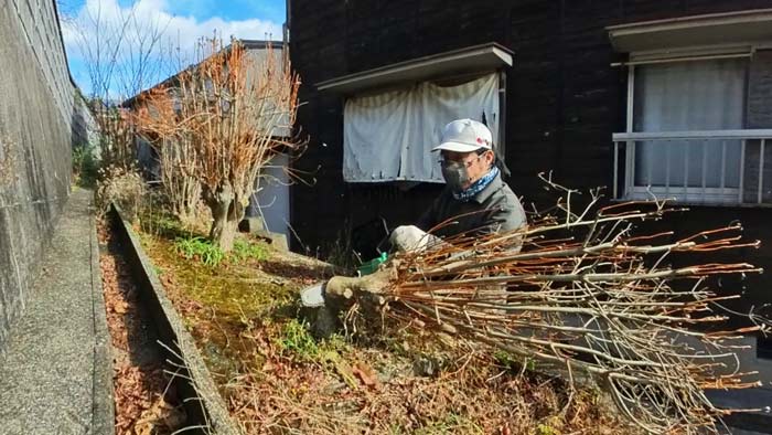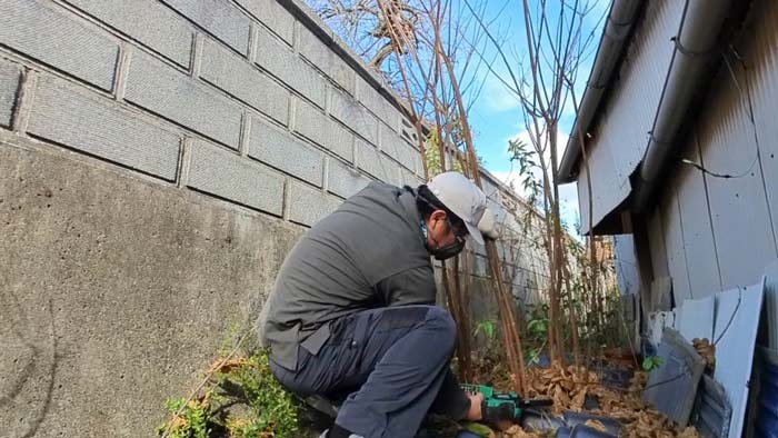 本日はご自宅の裏庭にあるサルスベリの低木の伐採をカットして欲しいという事で行ってきました。