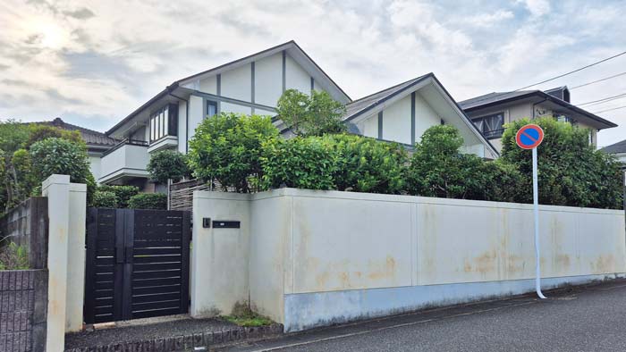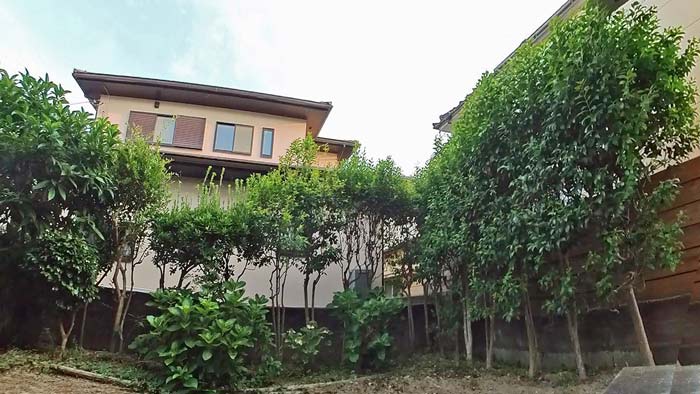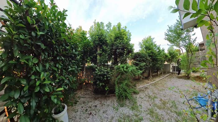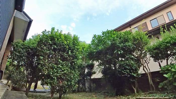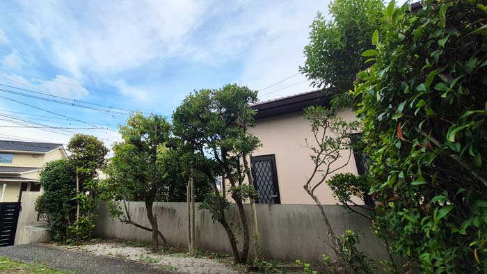 道路沿い塀の部分の中から見たお庭です。