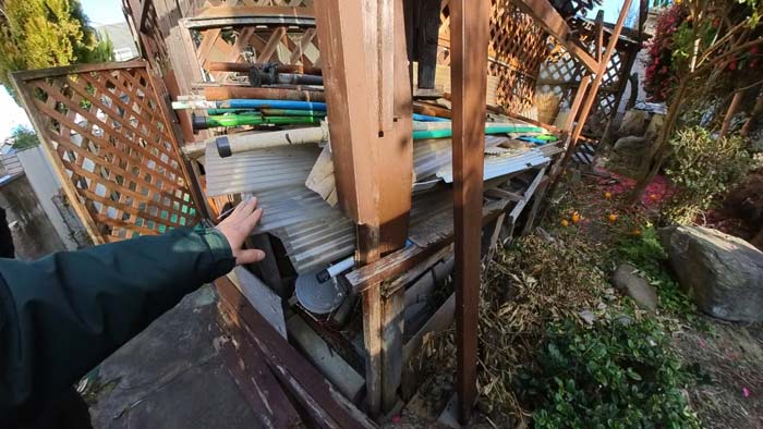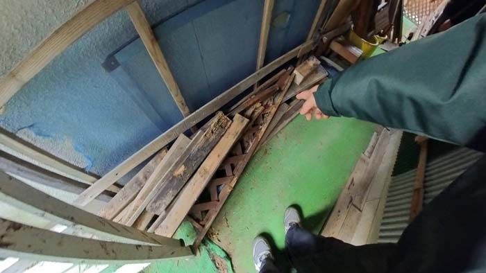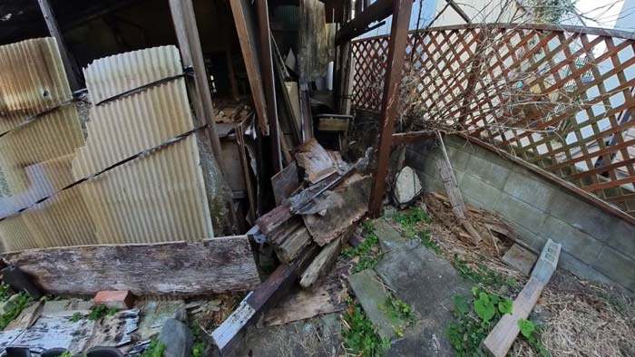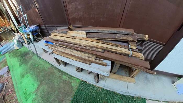 解体した端材が色んな所に大量にあります。