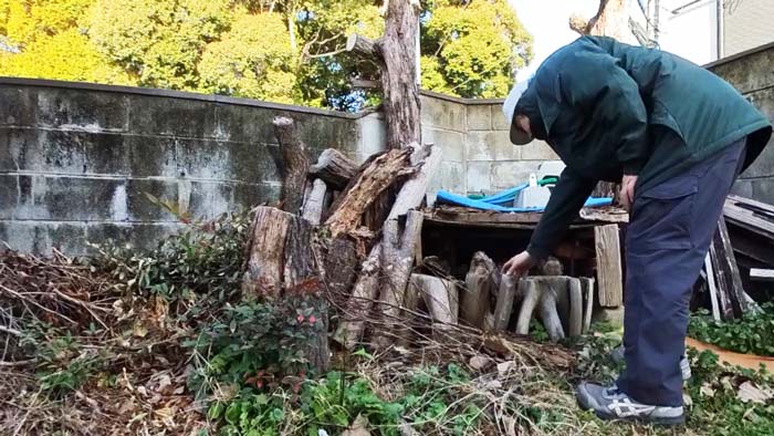 本日はお庭の溜まりに溜まった端材や生木などの片付けご依頼です。
