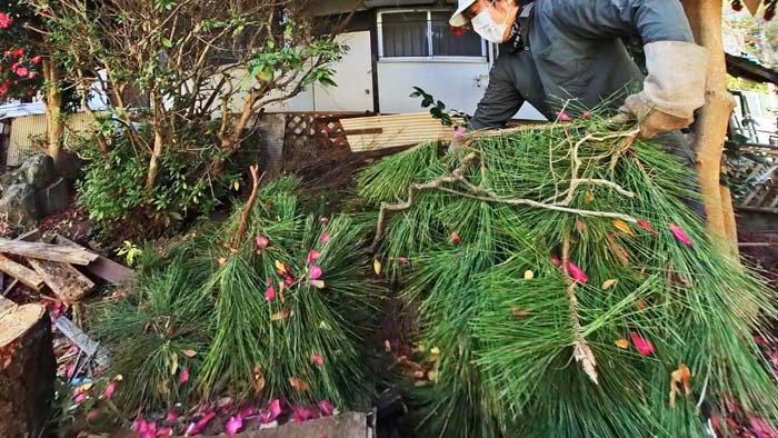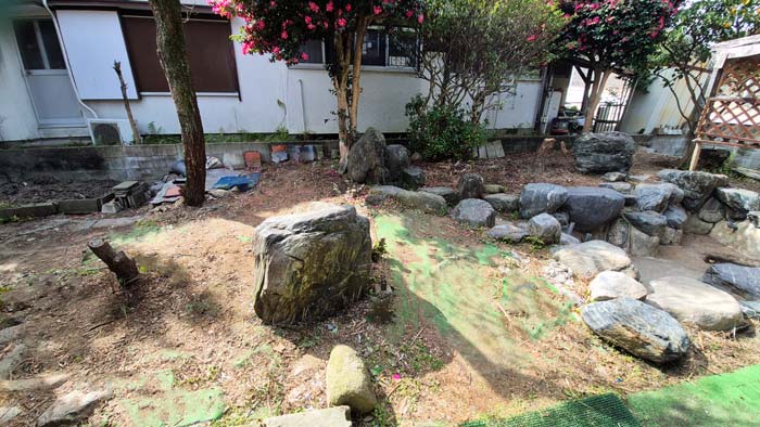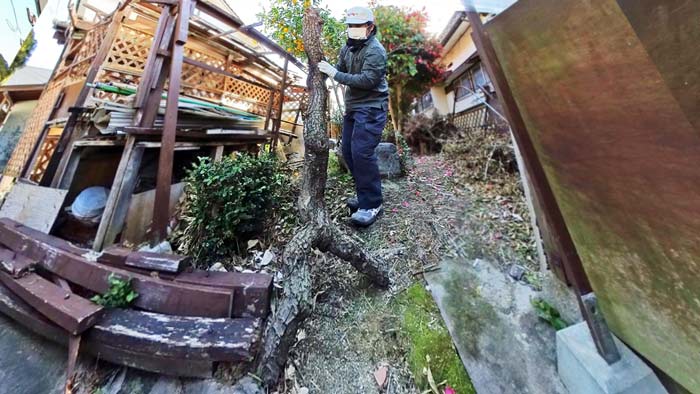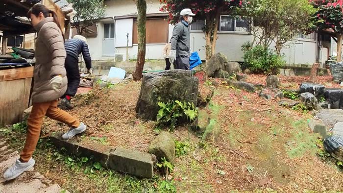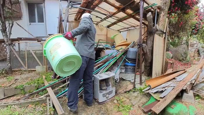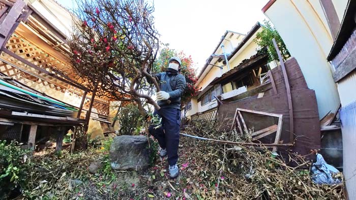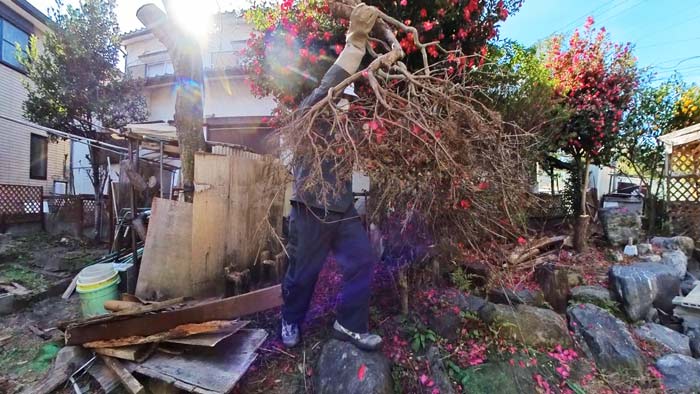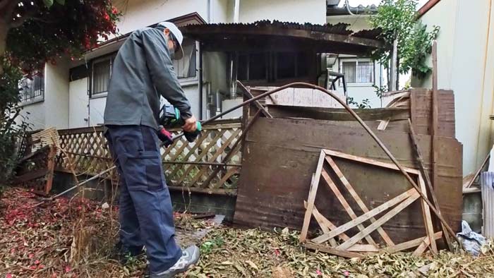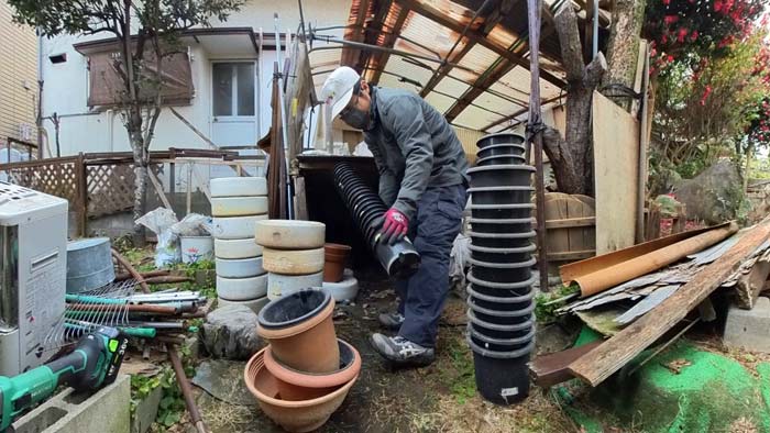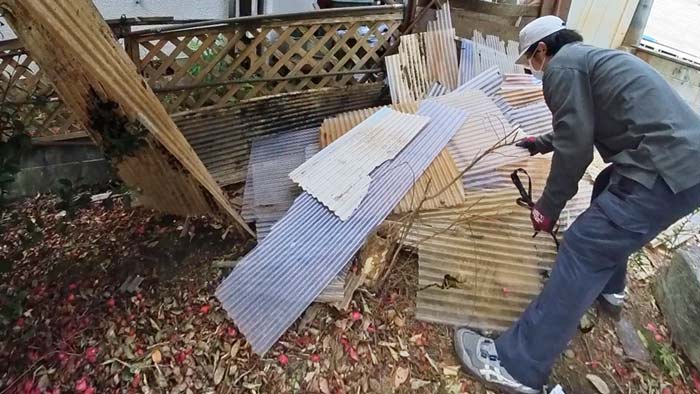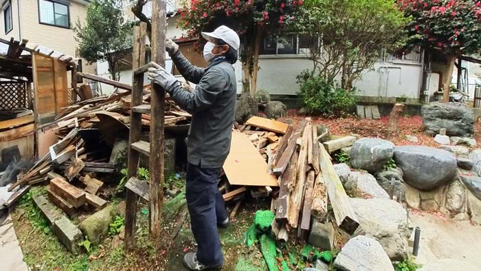 お庭が広い為、現場にて仕分け作業をして生木・金属・波板・プラ・資材木とゾーン分けをして各々集めておいて可能な限りスムーズにして、金属音などが大きく出る日はご近所様へのご挨拶もしております。