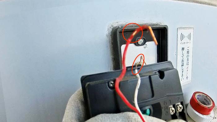 今回のインターホンはマイクのある第三世代品ですので通常三線と思うかもしれませんが、機器側にコンデンサを設ける事によりそのまま昔の一世代からの二線が使用出来る様にルールがあります。