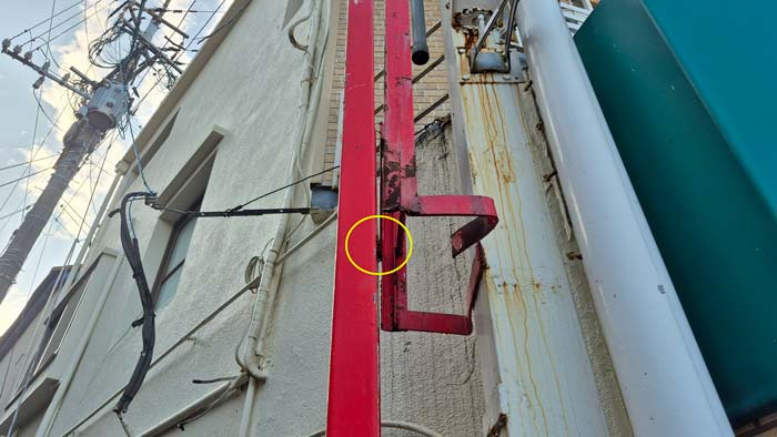 で、ここの溶接部一点で上部が繋がっている現状ですので危険ではあります。