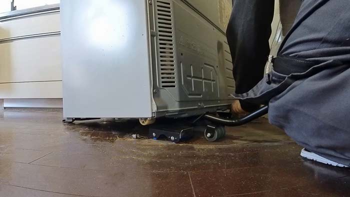 重量家財ローラーを敷いて傷つけない様に動かします。