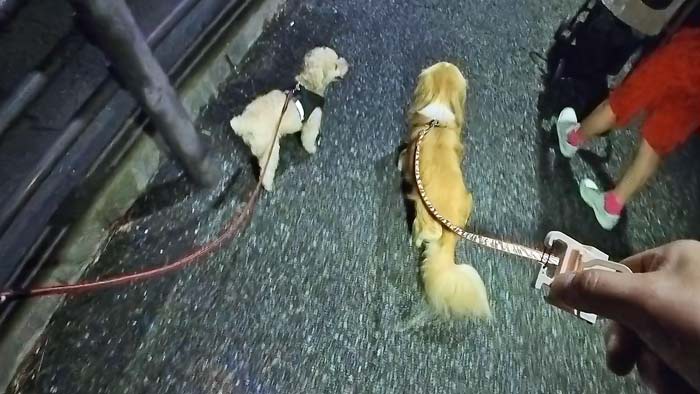 最後のお散歩は夜ですが、このままお客様の所まで。