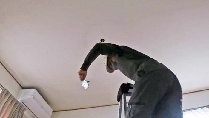 天井が石膏や木ではなくコンクリですので既存の金具をそのまま使用します。