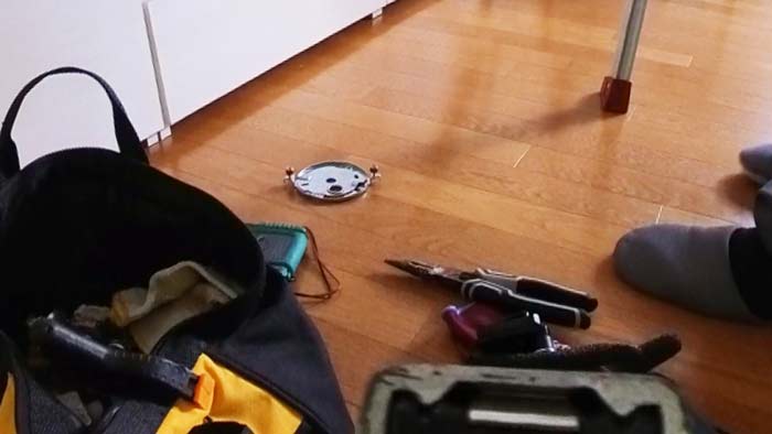 ブレーカーを落として作業開始ですが、各メーカー共通タイプではなかったのでハンガー金物も外す必要があります。