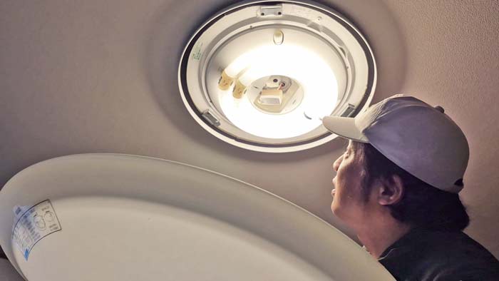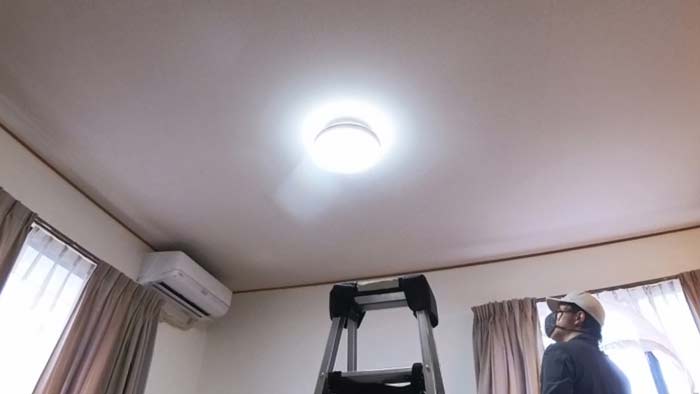 お客様の元々付けられていたシーリングライトを設置して一緒に確認。