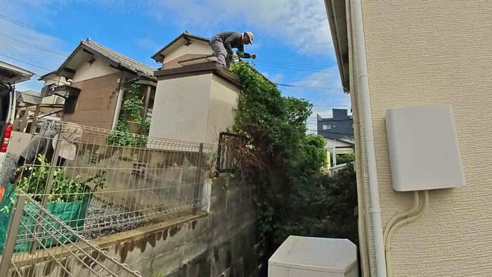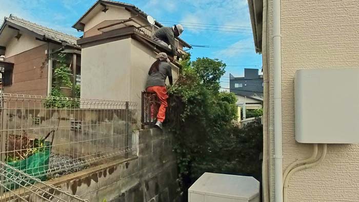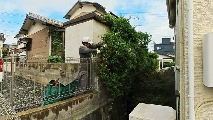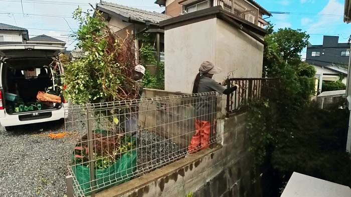 本日は高台にあるお宅で、お隣様の敷地に大量にツタが侵入してお手上げ状態ですので撤去出来ませんか?というご依頼でした。