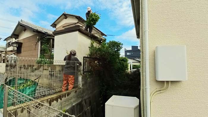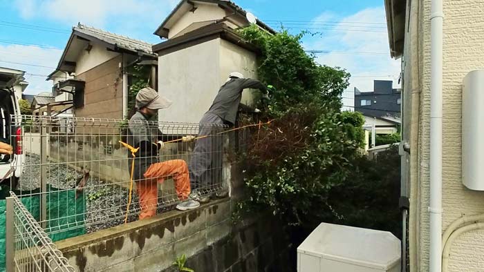 お隣様へのご挨拶後、作業開始です。