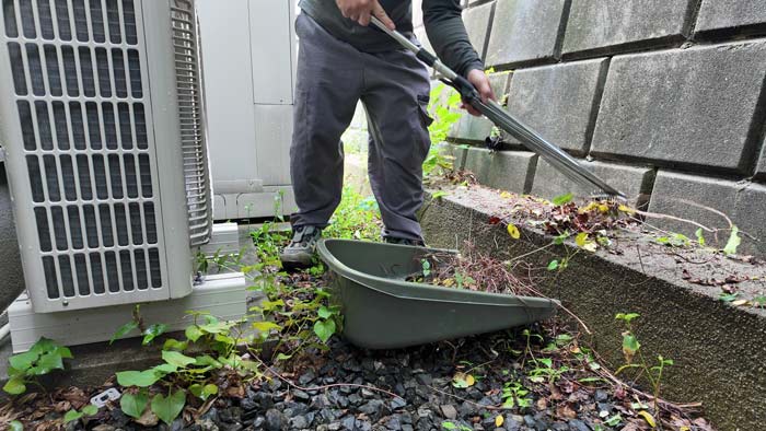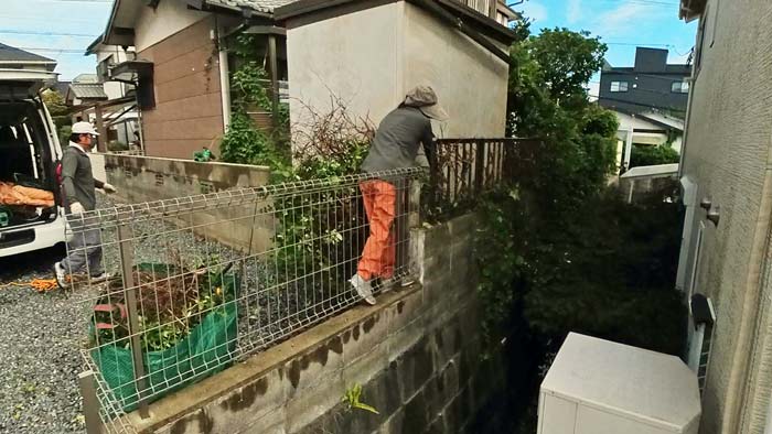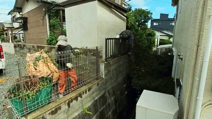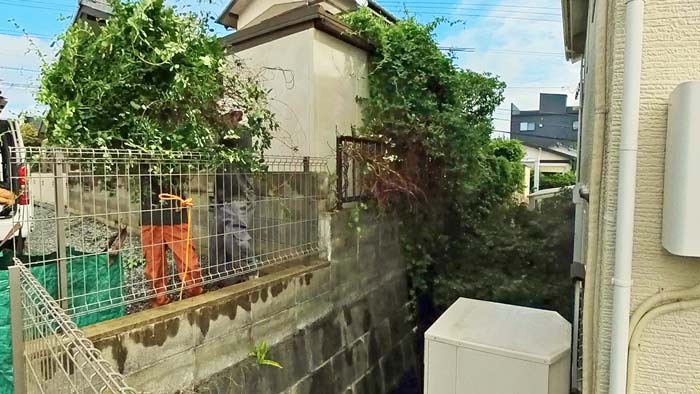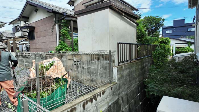 今回のご依頼は柵の向こうまででは無くてこの物置の裏のみです。