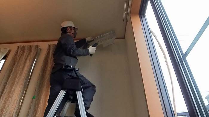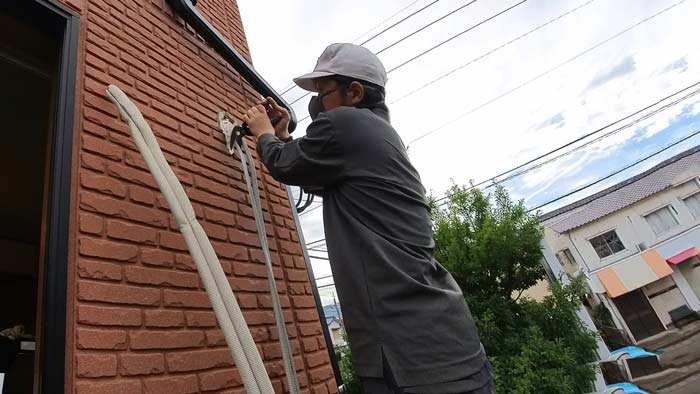 室内機を配管側へゆっさゆっさしてドレン水を吐き出します。