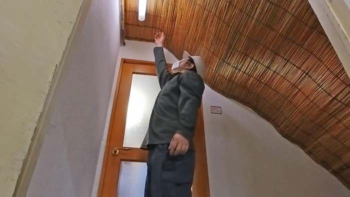 天井の竹簾を剥ぎ取っていきます。