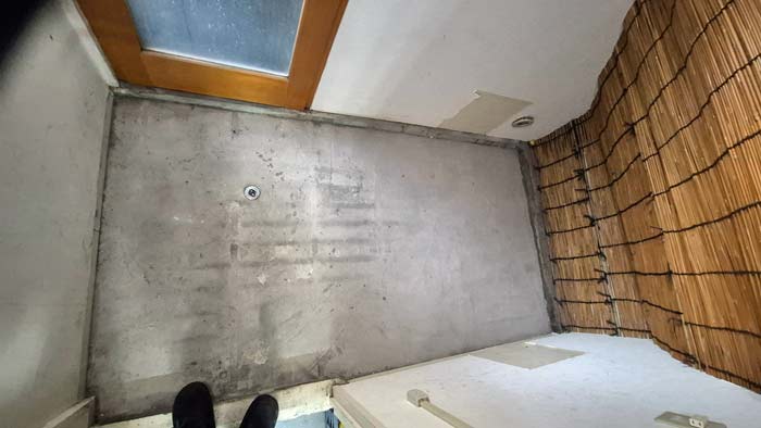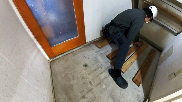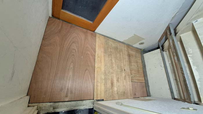 倉庫階段の下なので土足の為綺麗なフロア材とかではなく掃除しやすさ重視のコンパネが理想との事です。
