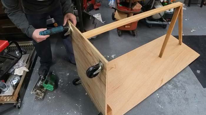 支え板をキャスター幅で固定。