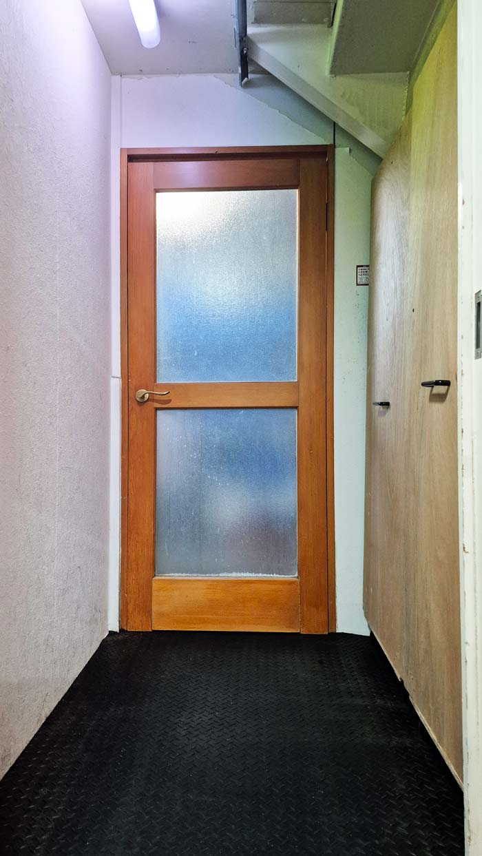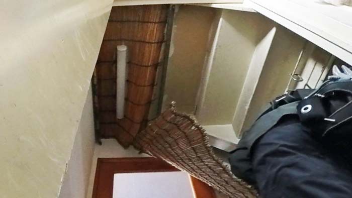 貼り付け竹簾をめくると階段裏が見えます。