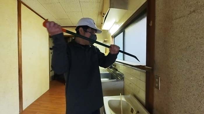 古い物件のリフォームの為、至る所に釘がありまして打ち込み棚を外したり不要な釘という釘を抜いてまいりました。