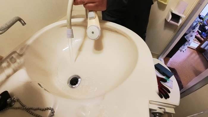 という事は大元は問題無しで、ただのヘッド劣化or混合蛇口側のパッキンorホース詰まりどれかです。
