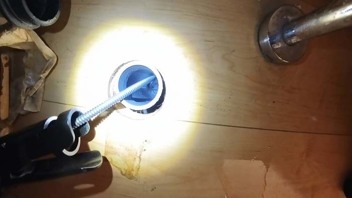 という事で同じ菅である、隣の洗面台配管→便器→外枡と綺麗に開通させます。