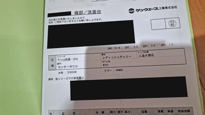 到着! サンウェーブさんの洗面台です。